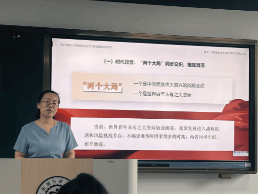 在研讨环节,教师们踊跃发言,交流教学经验与困惑,共同寻求提升课堂“四率”的路径。针对学生学习积极性不足等问题,大家一致认为应加强学习引导,培养学生的问题意识和批判性思维能力,同时结合当下热点,让理论教学更贴近学生生活。德法课程组提出坚持“八个相统一”,以创新方法和扎实成效打造学生真心喜爱的“金课”;新思想课程组通过案例教学深化理论理解;原理课程组则注重理论与实践结合,彰显马克思主义的真理力量。