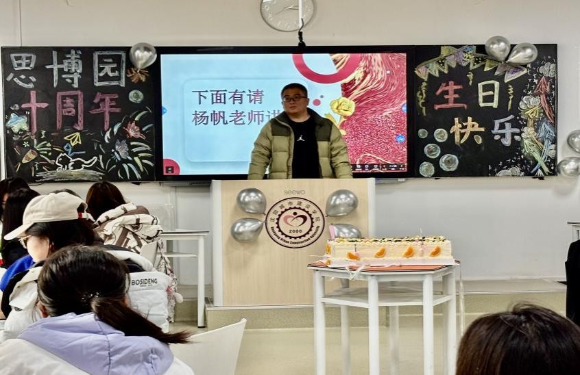 随后,tyc122cc太阳成集团院长助理杨帆在致辞中表示:今天是思博园十岁的生日,站在这里满是感慨。十年前,它只是一颗刚刚破土的思想的幼苗,如今已成为大家碰撞观点、探索热爱的繁茂花园。十年不是终点,而是新起点。希望你们继续带着热情与真诚在这里成长,在更广阔的天地里发光发热!最后,祝“思博园”十岁快乐,也愿每个在这里的同学,都能带着思考的力量奔赴人生的星辰大海!