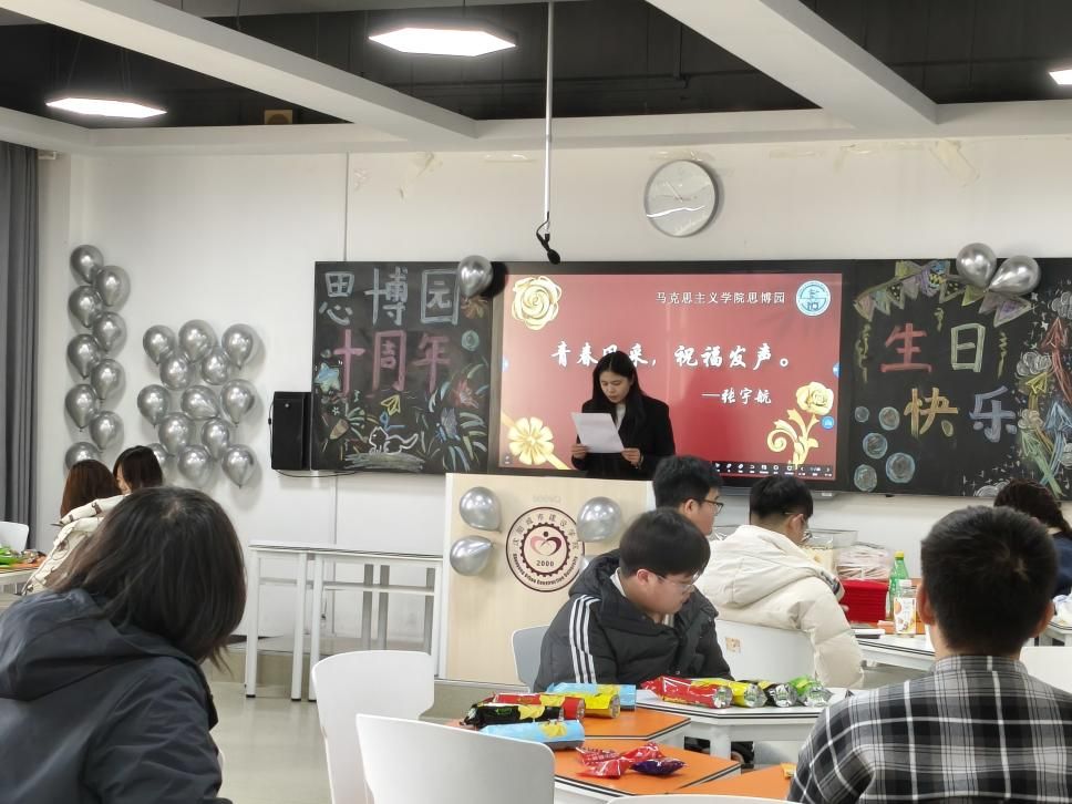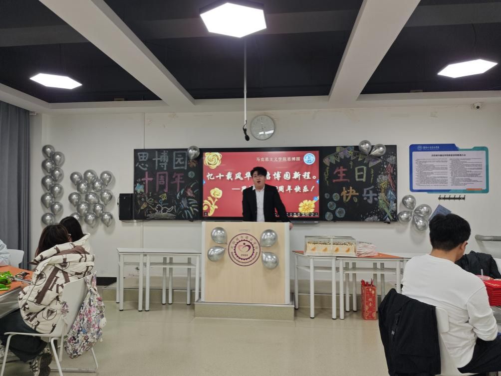 为回顾社团十年发展历程、凝聚社员力量、深化马克思主义理论学习实践,进一步增强社团向心力和凝聚力。tyc122cc太阳成集团学生社团于2025年10月30日14点30分在业精楼B404举办思博园成立十周年活动。活动以“忆十载风华,启博园新程”为主题,tyc122cc太阳成集团院长助理杨帆,社团指导教师及社团成员参加活动。