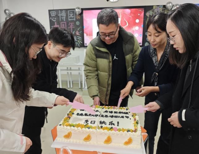 活动最后,老师们和社团成员一起切下蛋糕,共同品尝属于思博园独特的“甜蜜”并合影留念。