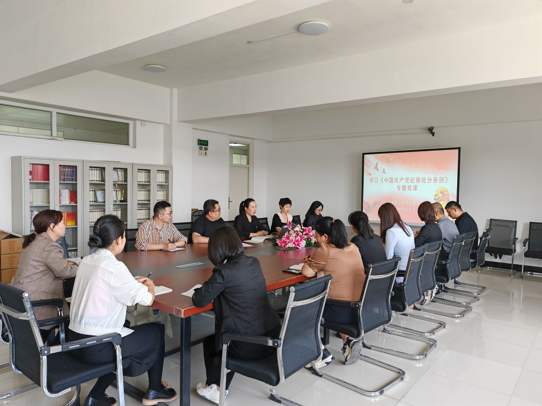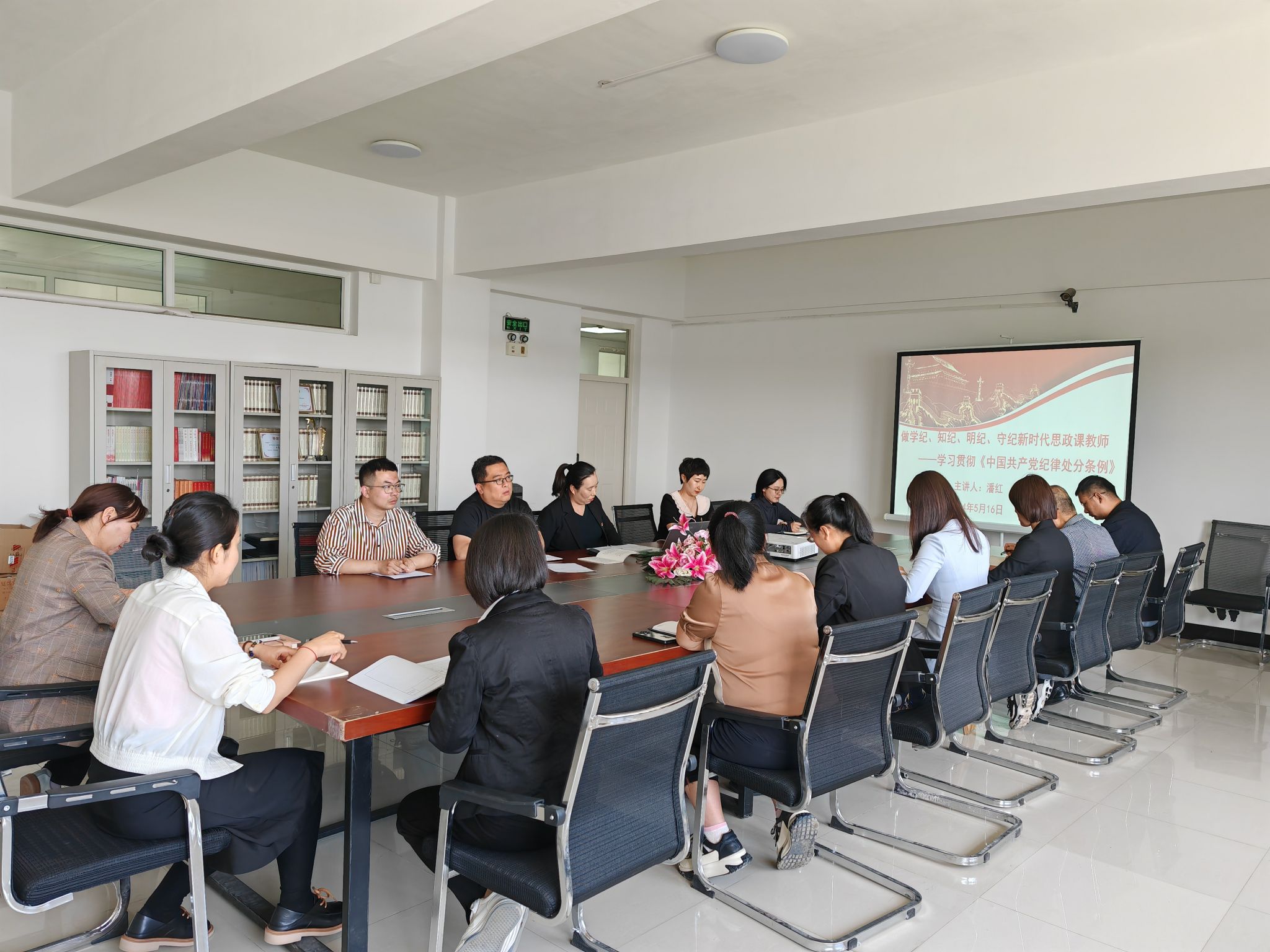 为深入学习贯彻习近平新时代中国特色社会主义思想和党的二十大精神,进一步提升党员教师的党性修养,切实推动党纪学习教育走深走实,认真贯彻落实关于党纪学习教育的部署要求,2024年5月16日下午1点,tyc122cc太阳成集团党总支在综合楼308会议室组织党员教师学习了《中国共产党纪律处分条例》,tyc122cc太阳成集团党总支书记潘红以《做学纪、知纪、明纪、守纪新时代思政课教师》为题,为全体党员教师讲授了专题党课。